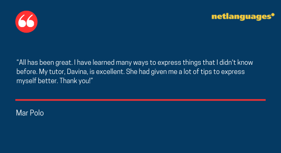 All students on our tutored courses are assigned their own personal Net Languages tutor who will help and correct them throughout the course. Students can ask their tutors questions about the course, practise their pronunciation, organise speaking tutorials with their tutor in real time and receive corrections and comments on their writing tutorials.